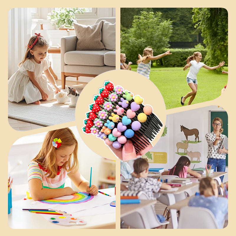Симпатичен анимационен стил - проектирана със закачливи анимационни шарки или животински форми като ягоди и зайци, тази щипка за коса е цветна и очарователна - тя прилича повече на забавна играчка, отколкото на аксесоар за коса, което насърчава децата да я носят с удоволствие.