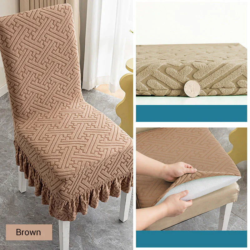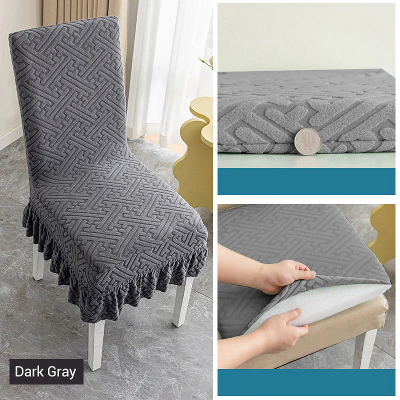 УНИВЕРСАЛНА ПРИЛОЖИМОСТ: Проектирана е за повечето стандартни размери на столове, калъфът може да се разтегне, за да се приспособи към различни форми на столове (кръгли, квадратни и правоъгълни възглавници), като по този начин осигурява перфектно прилягане.