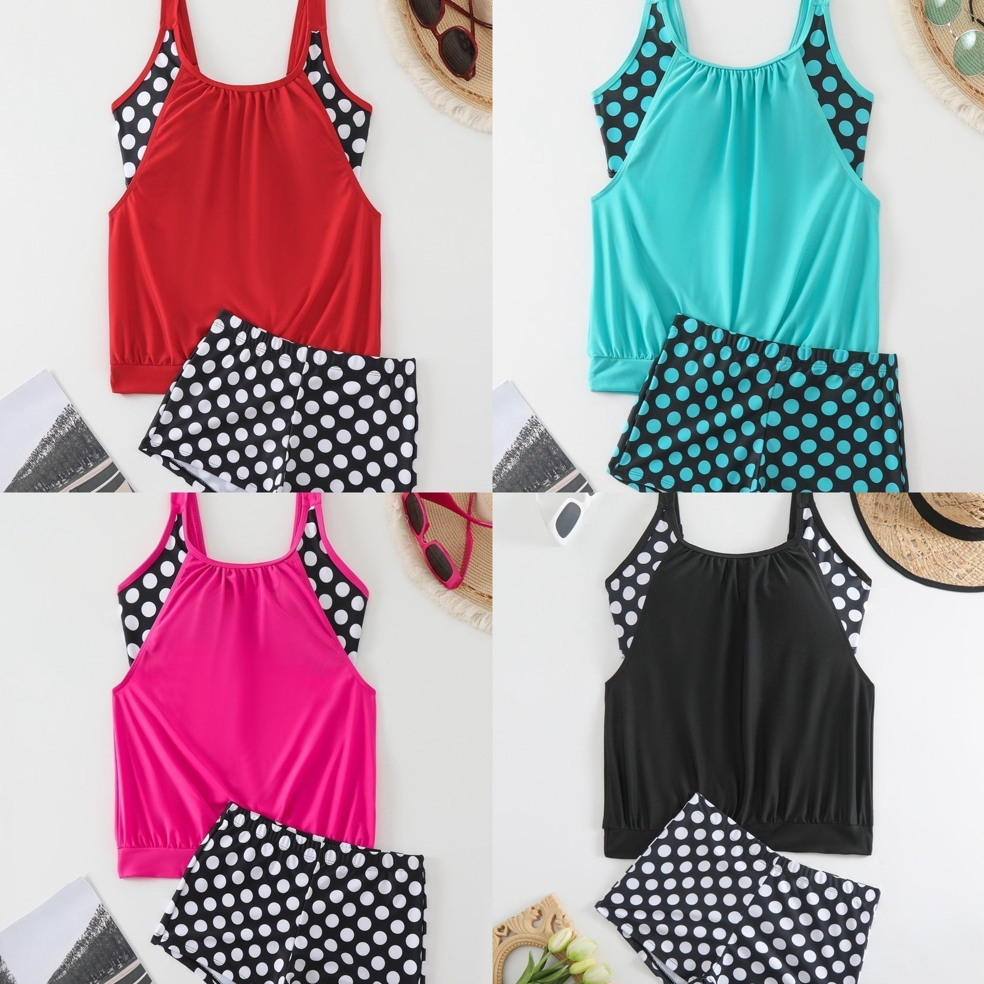 ❤️КОЛЕКТИВНИ ЦВЕТОВЕ И ТОЧКИ ПО ПОЛКАТА: Съчетанието на цветовете с модерния дизайн на точки по полката създава смел и стилен вид. Този дамски бански костюм е идеален, за да покажете забавната и модерна си страна, без да губите чувството за стил. ✨