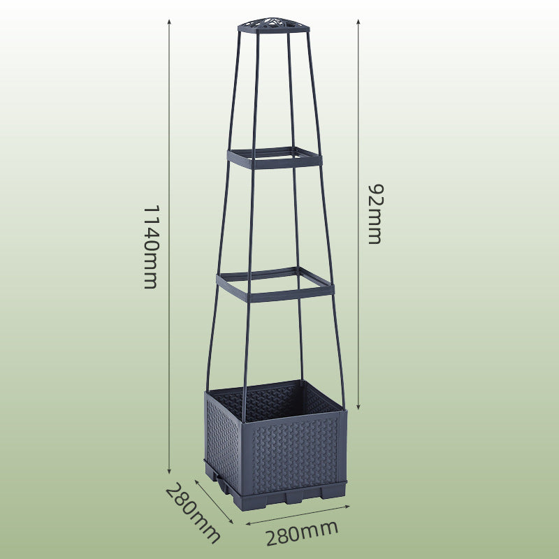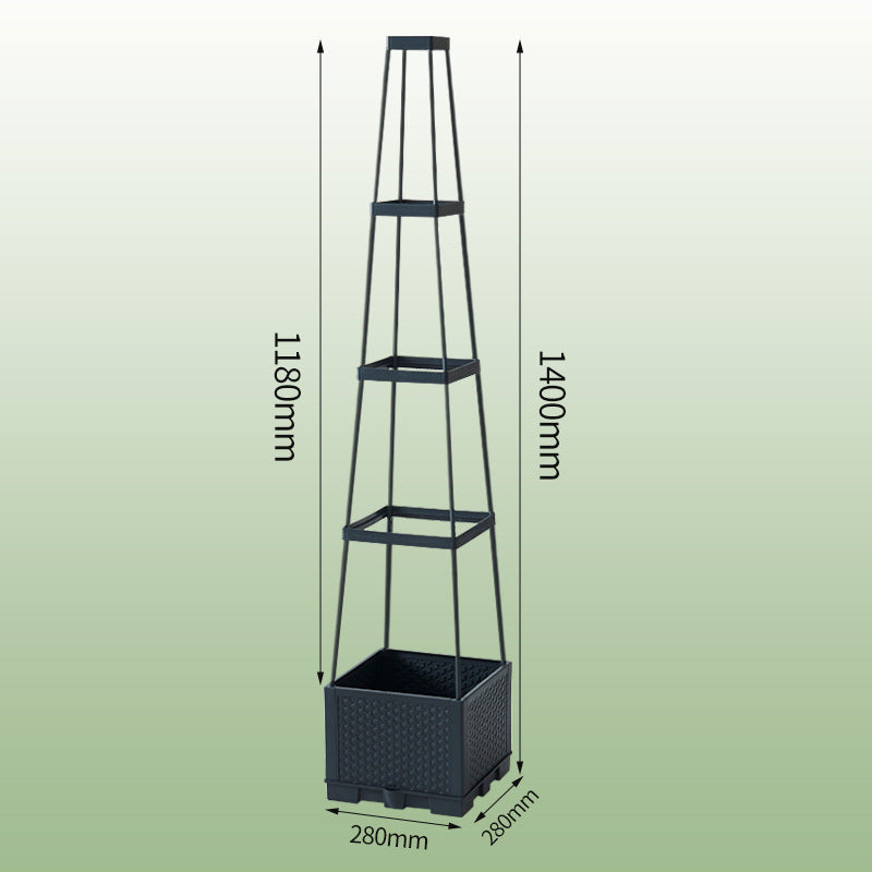 Конструкцията на кулата е стабилна – нейната рамка в стил обелиск осигурява здрава многостепенна опора. Тя предпазва от щети, причинени от вятъра, спомага за изправения растеж, гарантира, че лозите или цветята ви остават защитени по време на целия си растеж, и има елегантна форма.