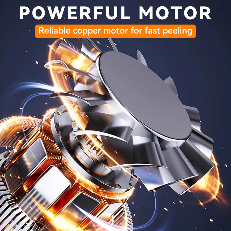 МОЩЕН МОТОР С МЕДЕНА НАВИВКА – Оборудван с мощен мотор с медна навивка, този електрически обелвач осигурява ефективно и бързо обелване на различни видове плодове и зеленчуци. Моторът осигурява постоянна мощност, така че дори и малките плодове могат да се обелват без усилие, без моторът да се блокира или да губи мощност. Дълготрайността и надеждността му го правят спестяващо време допълнение във всяка кухня.