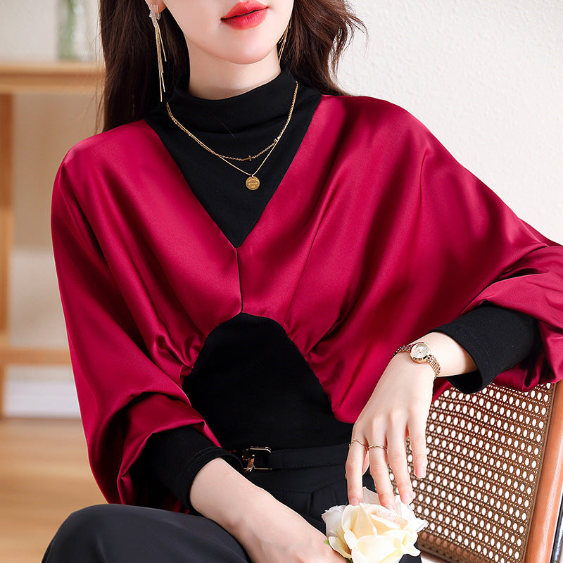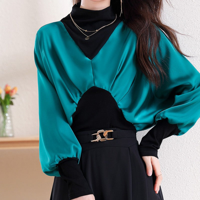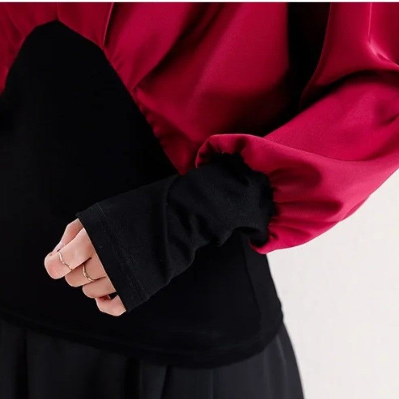 ФАЛШИВЕН СЛОЕВ ДИЗАЙН ОТ ДВУ ЧАСТИ - Отличителна черта на този горнище е неговият иновативен фалшив многопластов дизайн от две части. Включва стилен черен горнище с високо деколте във вътрешния слой и външен слой, който подчертава извивката на талията. Тази интелигентна подредба осигурява шикозен и модерен външен вид, идеален за тези, които ценят съвременните модни тенденции. Ръкавите и подгъвите на горната част са прецизно проектирани, осигурявайки спретнат и остър вид.