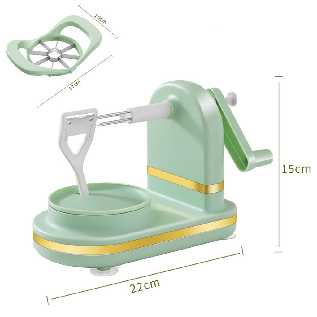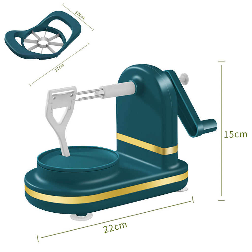 ЛЕСНА РАБОТА С МАНИВЕЛА: Поставете центъра на плода в стоманената игла, завъртете манивелата по часовниковата стрелка и наблюдавайте как обелвачката без усилие отстранява кората. Тази ръчна операция гарантира прецизност и контрол по време на целия процес на обелване.
