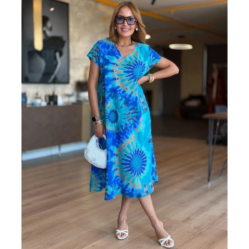 Избрани щампи - открояват се във всеки цвят: ярките щампи на тази рокля придават характер и дълбочина на цялостния силует. Всяка цветова гама има отличителен визуален ефект, който допълва сезонните нюанси, като ви гарантира, че ще останете в крак с тенденциите и същевременно ще запазите уникалния си стил.