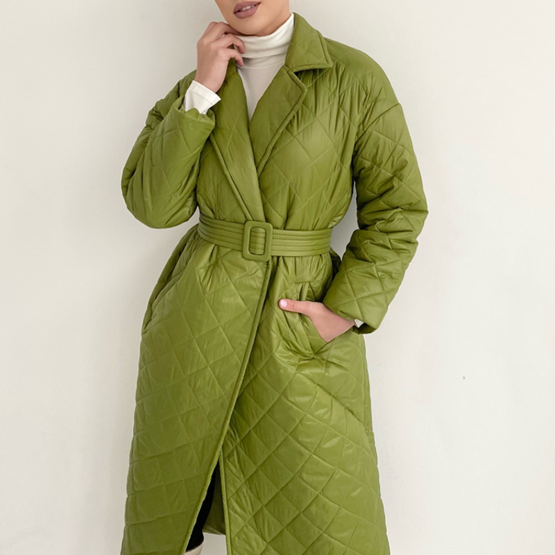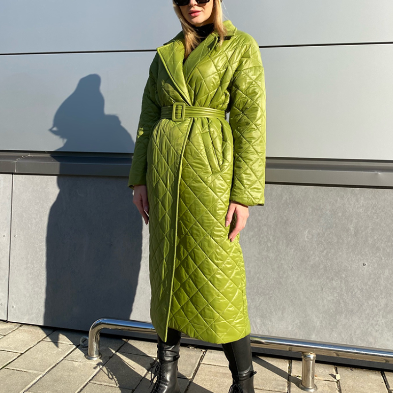 ЛУКСОЗЕН ДИАМАНТОВ ДИЗАЙН: Това палто е със зашеметяващ диамантен модел, който придава елегантност на зимния ви гардероб и го прави идеално както за ежедневни, така и за официални поводи.